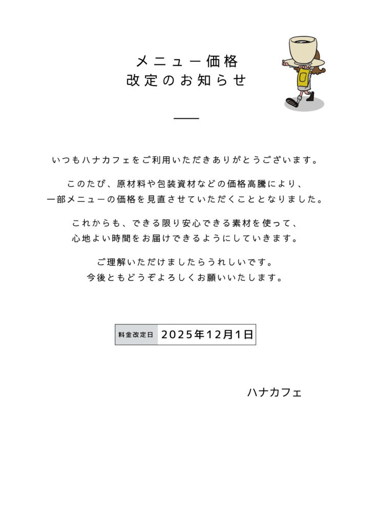 【価格改定のお知らせ】